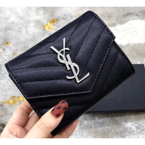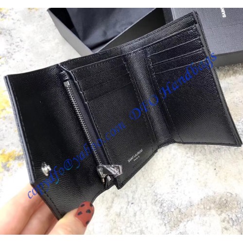 Saint Laurent Cassandre Matelasse Compact Tri Fold Wallet In Quilted Lambskin YW403943-B