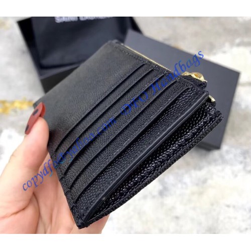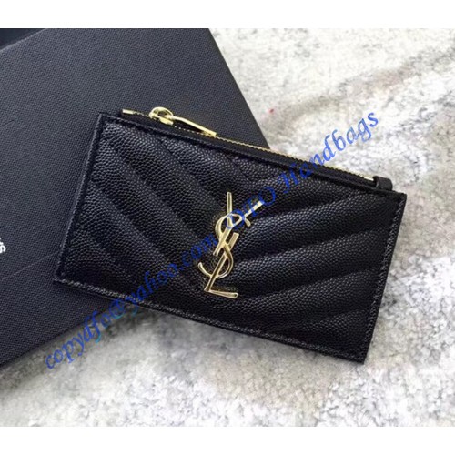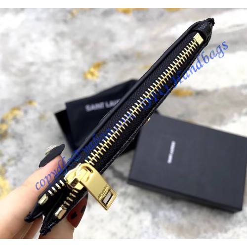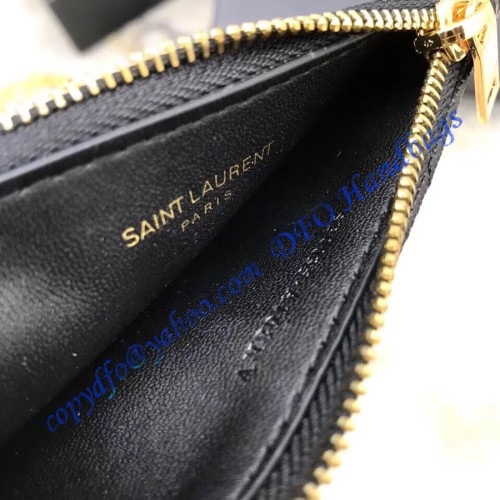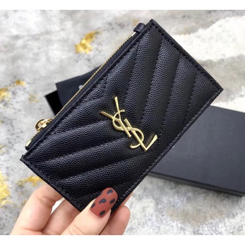 Saint Laurent Cassandre Matelasse Fragments Zipped Card Case In Grain De Poudre Embossed Leather YW607915-A