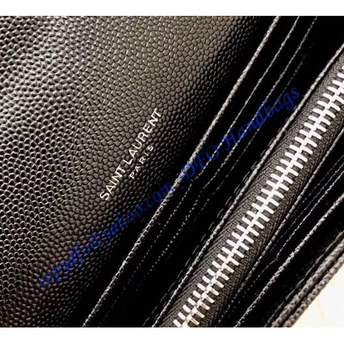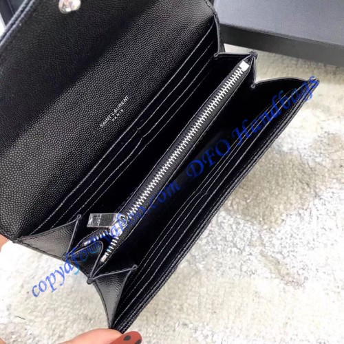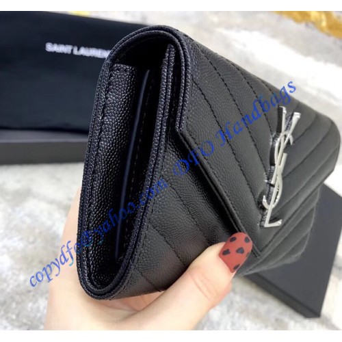 Saint Laurent Cassandre Matelasse Large Flap Wallet in Grain De Poudre Embossed Leather YW372264-B