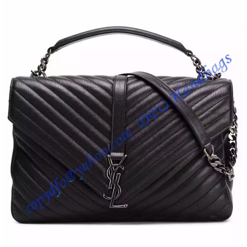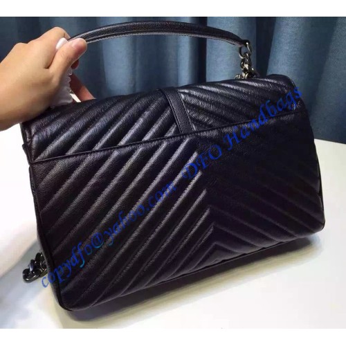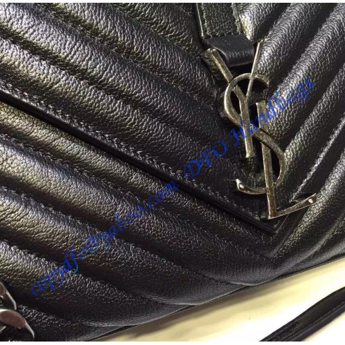 Saint Laurent Classic Large College Monogram Bag in Black Malelasse Leather