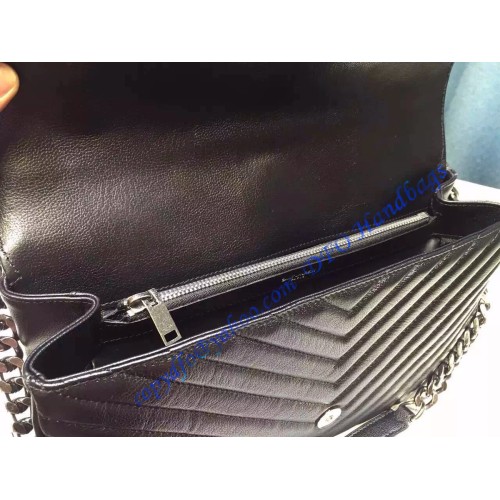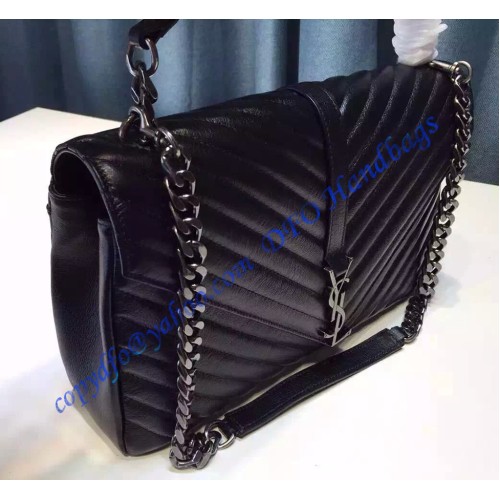 Saint Laurent Classic Large College Monogram Bag in Black Malelasse Leather