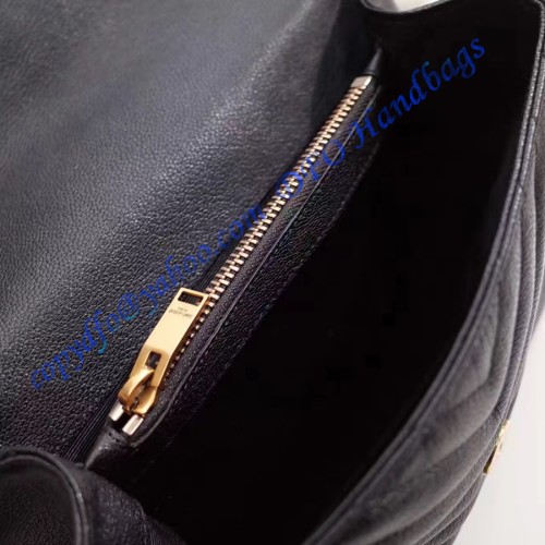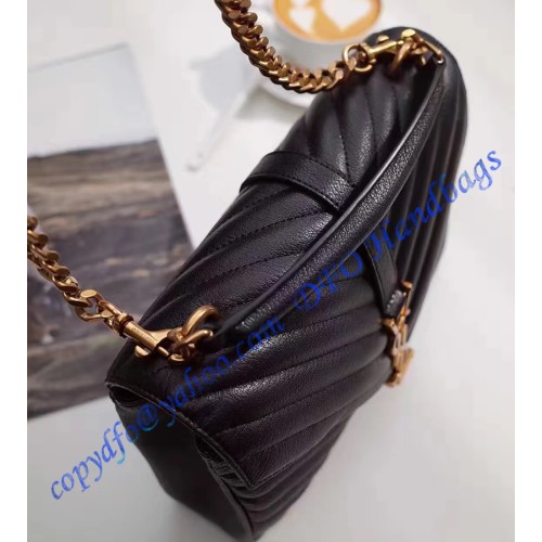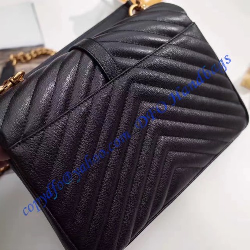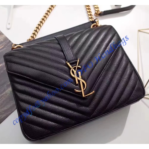 Saint Laurent Classic Medium College Monogram Bag in Black Malelasse Leather with Gold-toned Hardware