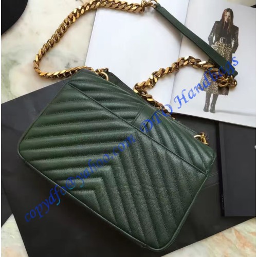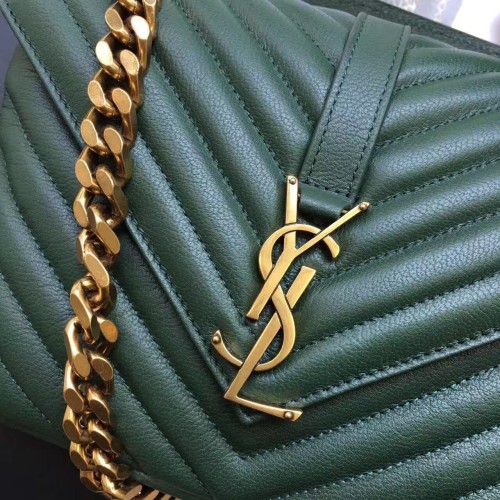 Saint Laurent Classic Medium College Monogram Bag in Green Malelasse Leather with Gold-toned Hardware