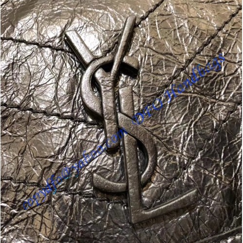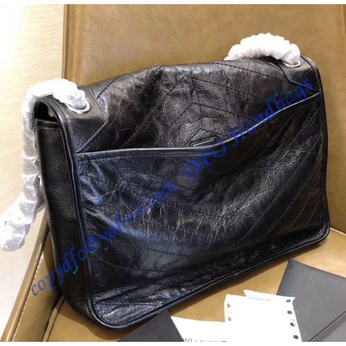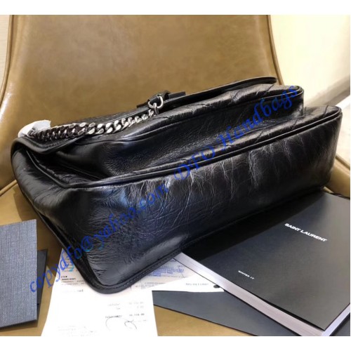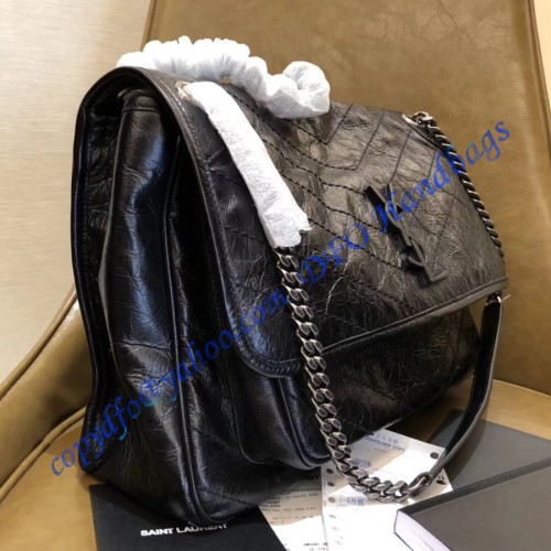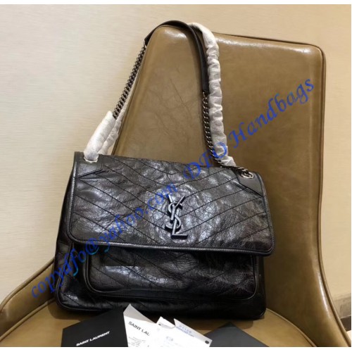Saint Laurent Large Niki Chain Bag in Crinkled and Quilted Black Leather