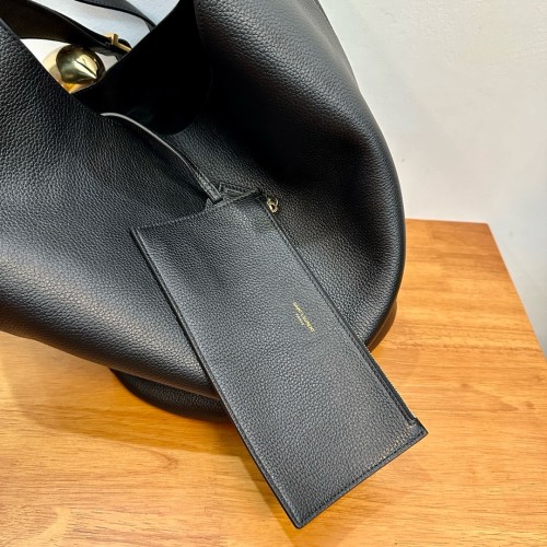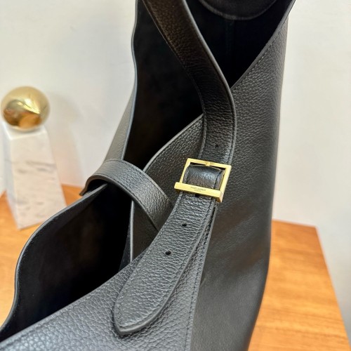 The hobo bucket version of the iconic LE 5 À 7 in finely grained leather, defined by its leather tab closure decorated with the CASSANDRE.