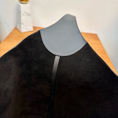 Spacious and lined in tonal suede, it features one main compartment with an inner zip pocket.