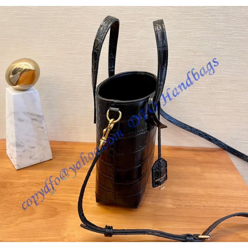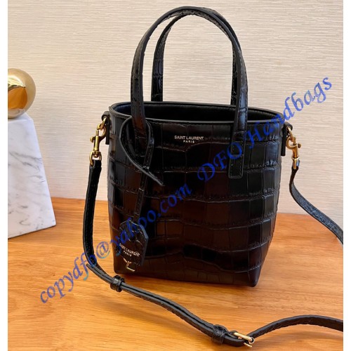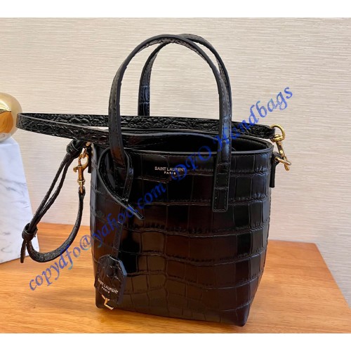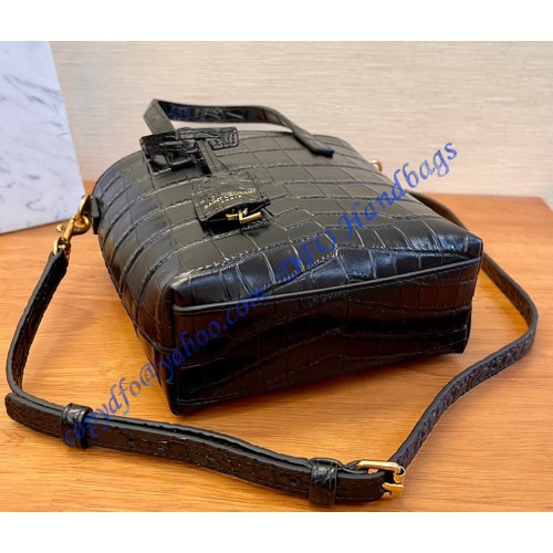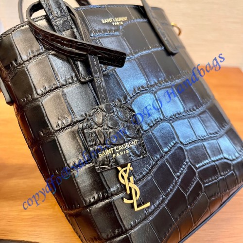 Saint Laurent Paris Mini Toy Shopping in Crocodile-Embossed Leather YSL712367-black
