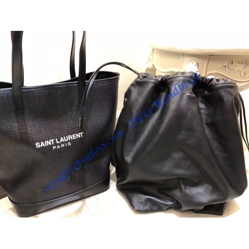 Saint Laurent TEDDY shopping bag in linen canvas YSL8805-black