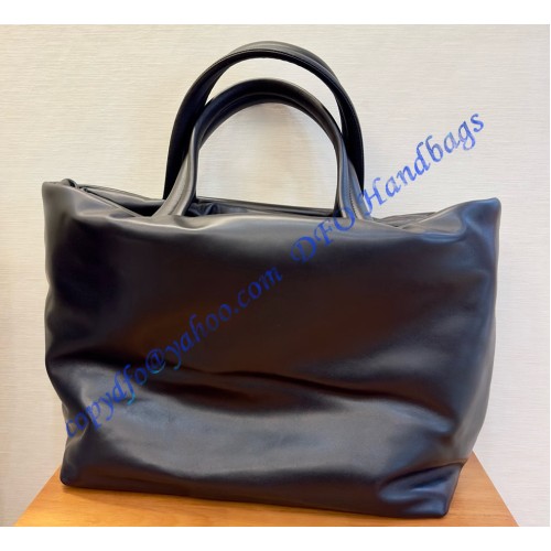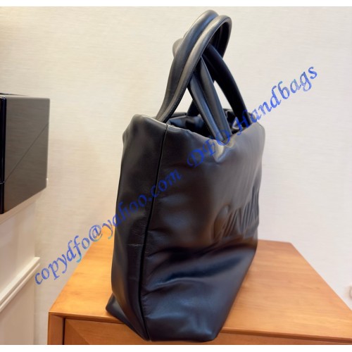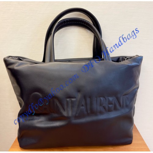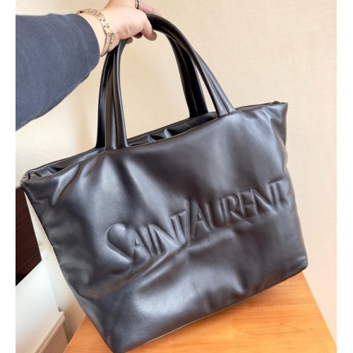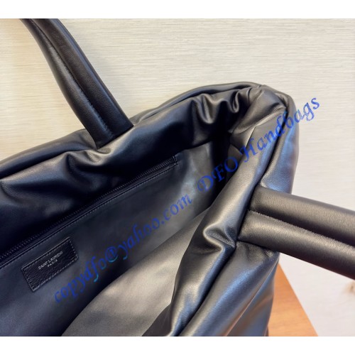WIDE PUFFER TOTE BAG IN NAPPA LAMBSKIN WITH A COMPLETE LEATHER LINING AND SAINT LAURENT SIGNATURE.