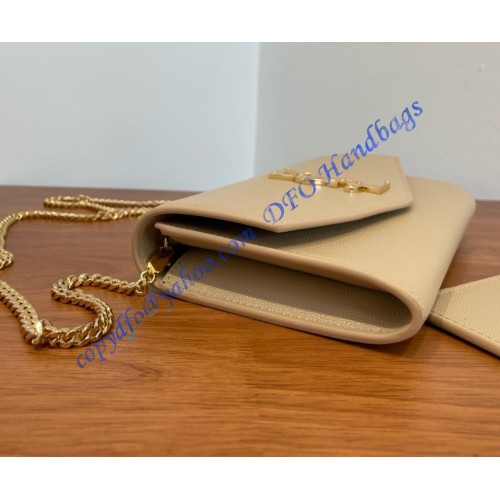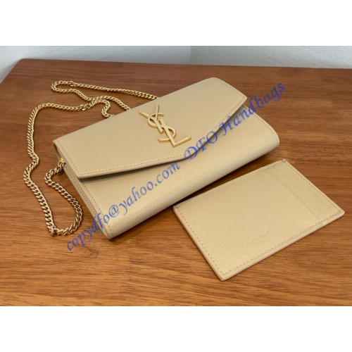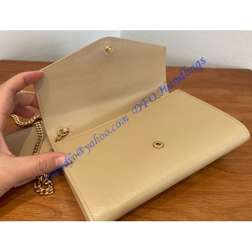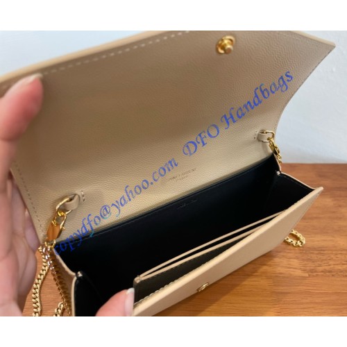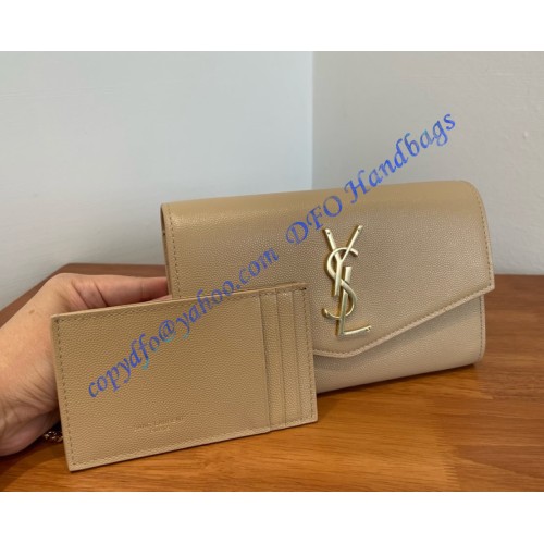 Saint Laurent UPTOWN chain wallet in grain de poudre embossed leather YSL607788-tan