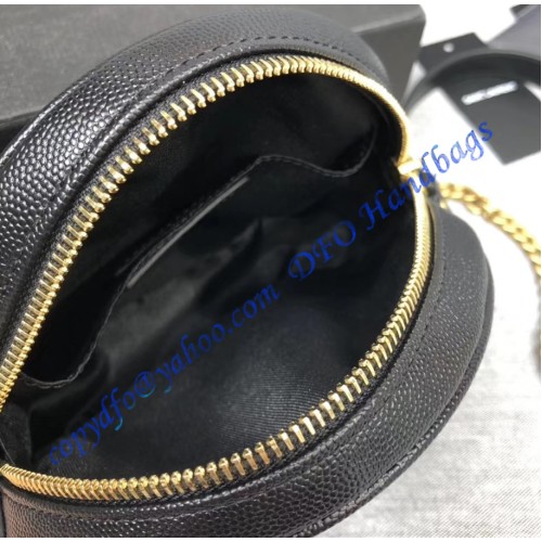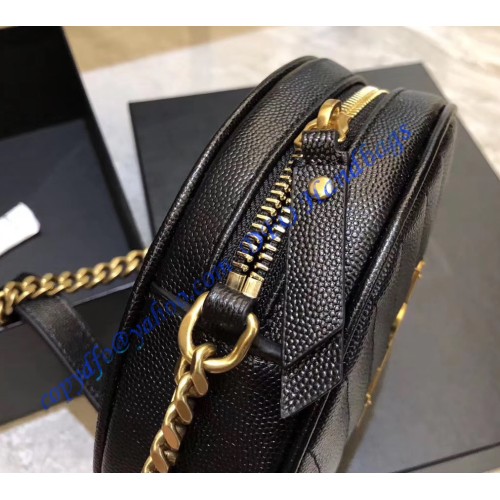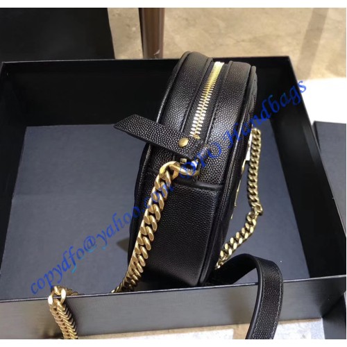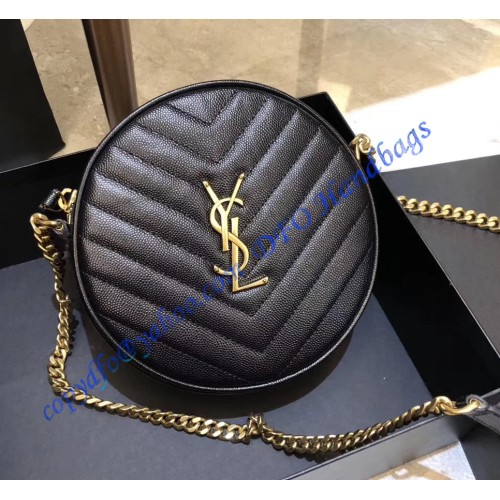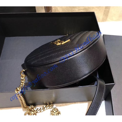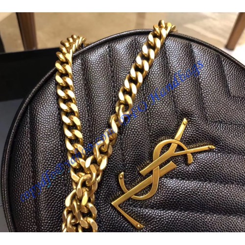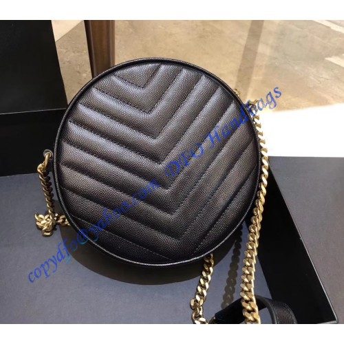 Saint Laurent VINYLE round camera bag in chevron-quilted grain de poudre embossed leather YSL610436-black